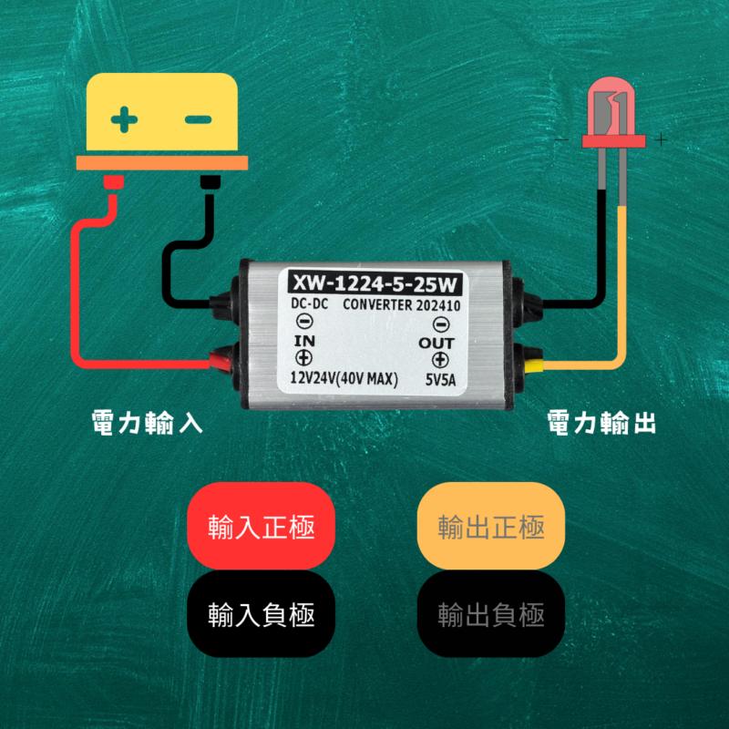 - 輸入電壓:DC 12V24V(寬壓8~40V)