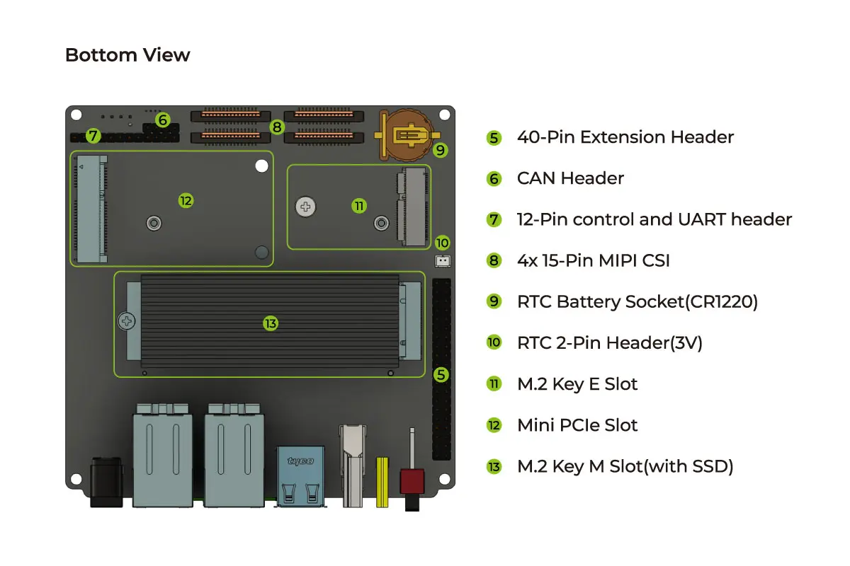 | 記憶體 | 4GB 64 位元寬 LPDDR5 DRAM(高達 34GB/s;51 GB/s MAXN_SUPER) | 8GB 128 位元寬 LPDDR5 DRAM(高達 68GB/s;102 GB/s MAXN_SUPER) |